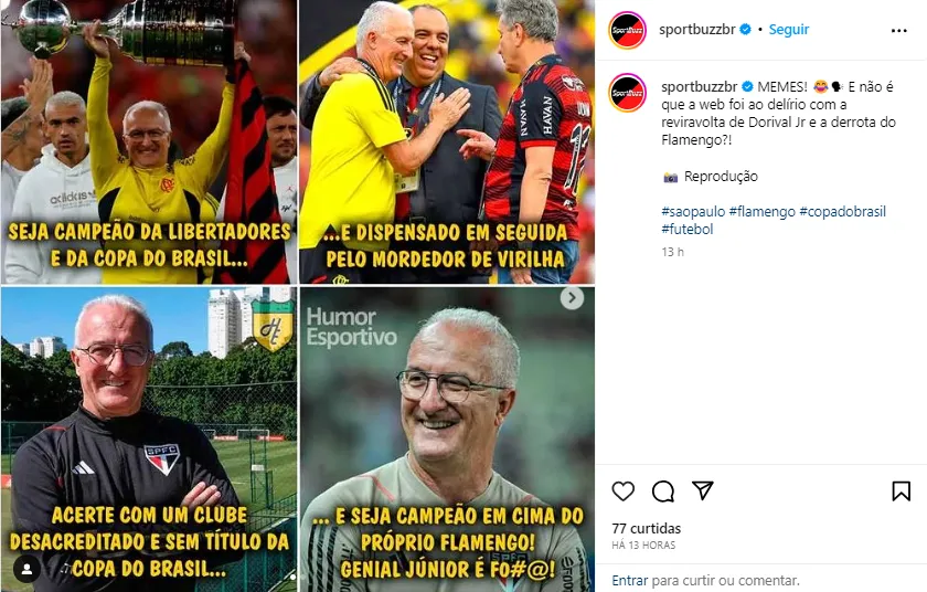 E claro que os memes lotaram a web, principalmente porque o técnico que deu o título ao São Paulo, foi Dorival Júnior. O treinador não renovou com o seu antigo Clube logo após conquistar a Copa do Brasil e Libertadores, e muito se falou sobre a decisão da diretoria, que errou na temporada passada em não continuar com o treinador.