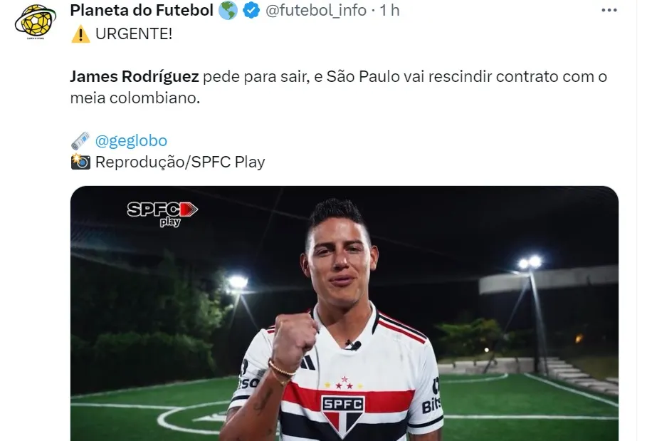 De acordo com o setorista Caio Alves, James sugeriu uma rescisão do São Paulo, pelo menos, duas vezes em 2023. O colombiano não quis ser mais importante que Lucas Moura e Luciano na equipe. A diretoria, todavia, o convenceu do contrário em ambas.