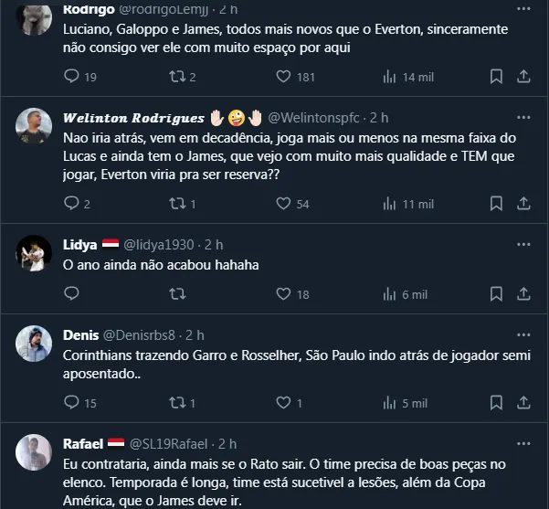 Vale frisar que, por mais que o staff do atleta siga buscando um acordo com o Flamengo e só queira ouvir outras propostas caso o acerto não ocorra, o SPFC está bastante ligado na situação do camisa 7.