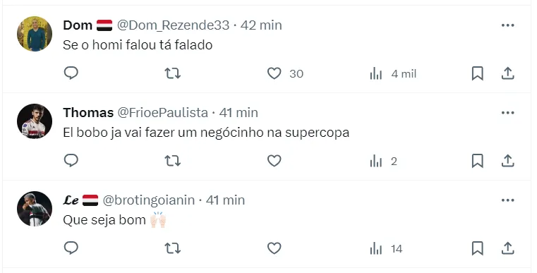 A expectativa do Clube é que essa semana seja decisiva para a definição do futuro desses jogadores na equipe. Mas, de acordo com informações do comunicador Gabriel Sá, o São Paulo já avançou na busca por um desses reforços.