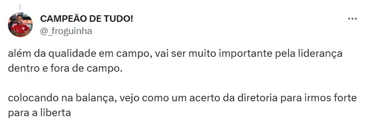 Sendo um dos pilares do grupo, Rafinha assume que não deve ficar por muito mais tempo jogando profissionalmente, mas que tem o desejo de disputar uma Libertadores com a camisa do Tricolor Paulista, que busca conquistar o torneio pela quarta vez em sua história.
