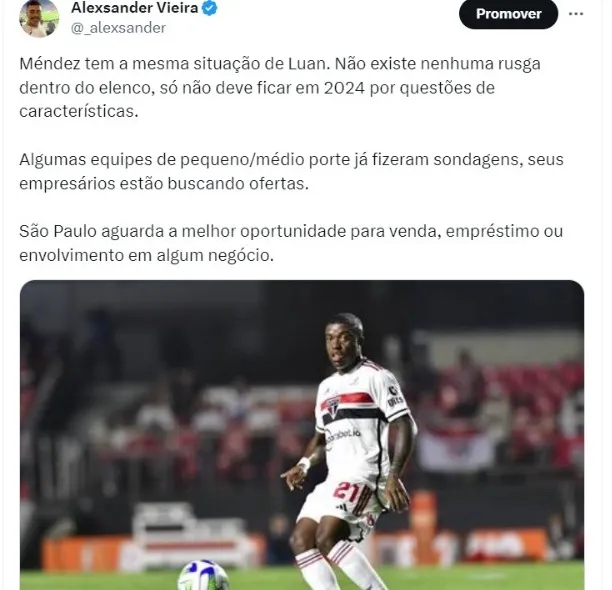 Méndez tem a mesma situação de Luan. Não existe nenhuma rusga dentro do elenco, só não deve ficar em 2024 por questões de características.