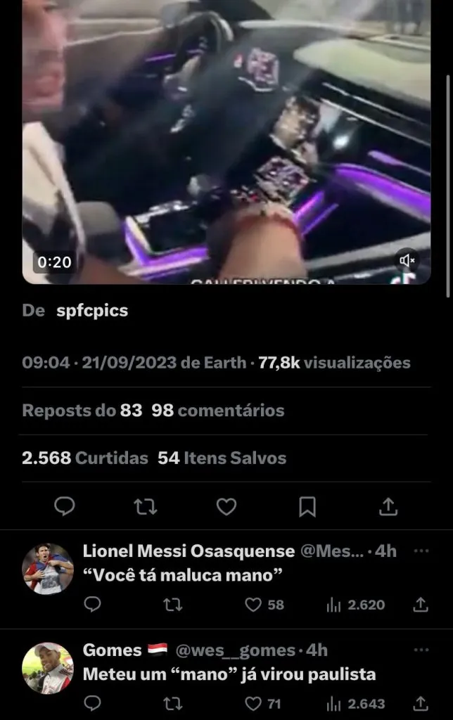 Agora, o foco é totalmente no Morumbi, para a grande final contra o Flamengo. Porém, após a partida contra o Fortaleza, houve um momento inusitado envolvendo Calleri, camisa 9 do Soberano, em vídeo gravado por uma torcedora, o jogador aparentemente estava saindo de carro do Morumbi e foi surpreendido.
