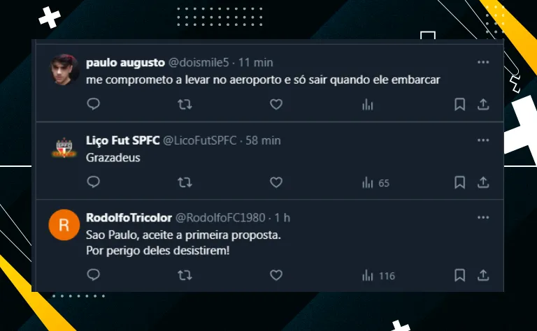 Aos 25 anos, o argentino tem contrato com o SPFC até 2027 e é avaliado em mais de R$ 40 milhões pelo Transfermarkt. Até por isso, com a informação do interesse da Viola, o torcedor comemorou nas redes sociais e não se conteve.