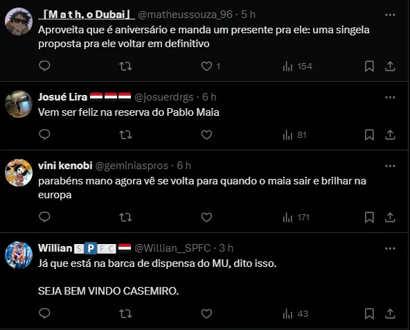Apesar do sonho distante, Casares já falou sobre um possível retorno de Casemiro ao São Paulo e deixou as portas abertas caso o volante decida voltar a atuar no futebol brasileiro.
