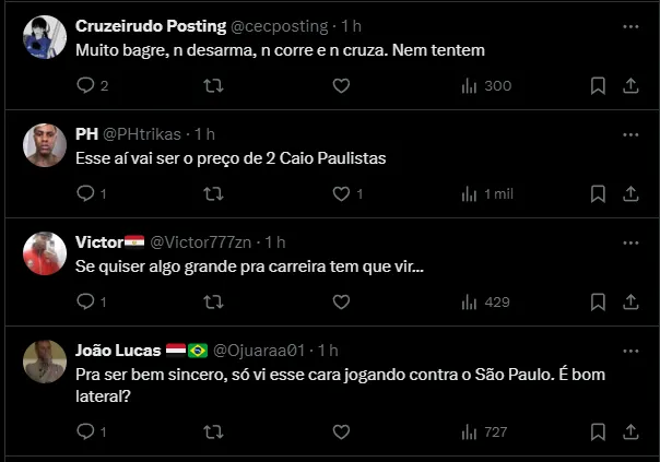 Diante dessa situação envolvendo Welington, a diretoria do São Paulo começou a procurar outras opções para a lateral-esquerda, jogadores que se encaixam no esquema utilizado por Thiago Carpini.