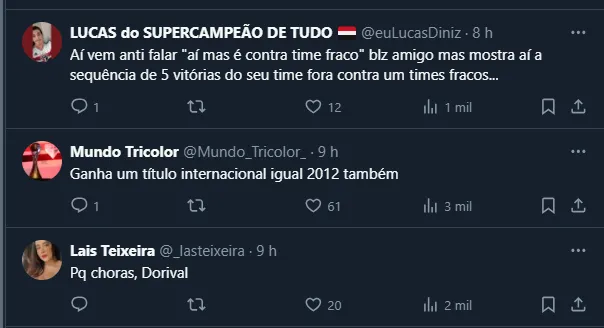 Quer dizer, após 12 anos, o Tricolor voltou a vencer cinco partidas seguidas como visitante, algo que não ocorria desde o primeiro semestre de 2012, quando também conseguiu tal feito.