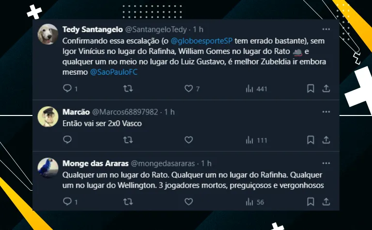Dentre os jogadores mais questionados, estão: Rafinha, Wellington Rato, Luciano e Luiz Gustavo. Para grande parte dos são-paulinos, são nomes que não deveriam ser escalados no 11 inicial.