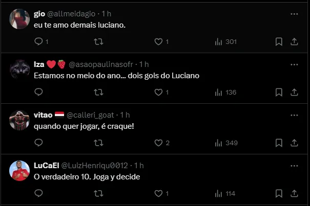 “E se você olha os gols de Luciano em 2023 e anos anteriores também, pode se dar conta de que o que fez hoje não é uma casualidade. Não é uma casualidade“, completou o treinador argentino do Tricolor Paulista.