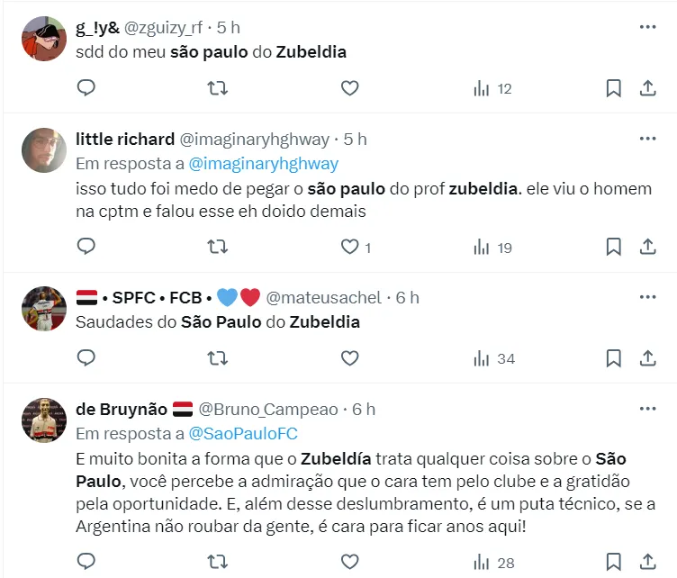 “Quando você vê que o São Paulo põe 45 mil torcedores, 40 mil, 38 mil, 55 mil, 60 mil, é algo para ressaltar. Possivelmente muitas dessas pessoas põem como prioridade gastar seu dinheiro para torcer pela equipe. Nós não podemos ignorar isso. O futebol é provavelmente o espetáculo mais lindo a nível mundial. Os jogadores que atuam sob pressão, tomam decisões, e nós que estamos tratando de orientar, temos que dar uma felicidade ao torcedor, fazer um bom jogo”.