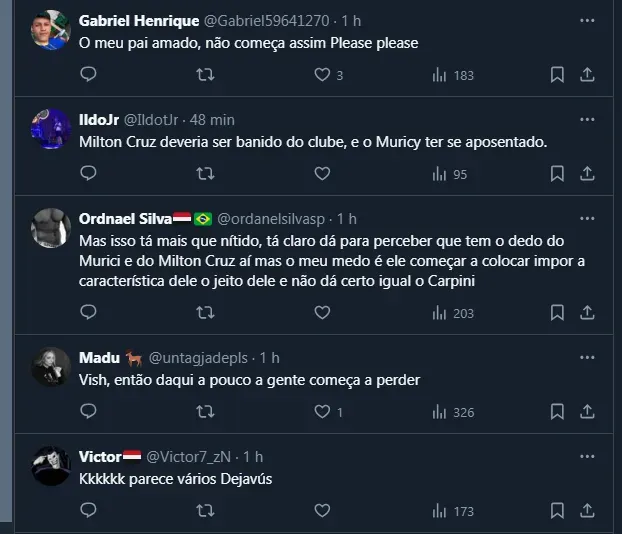 Isto é, de acordo com informações do repórter Eduardo Affonso, Zubeldía tem conversado e utilizado bastante a experiência da dupla nos primeiros dias de São Paulo, algo que Carpini não vinha fazendo com frequência.