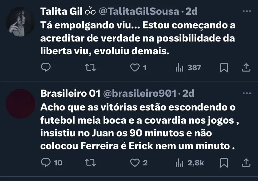 Agora, resta o torcedor esperar como será o restante da temporada no comando do treinador argentino. Por enquanto, ele levou a equipe as oitavas da Copa do Brasil e da Libertadores. Além do bom desempenho no Brasileirão.