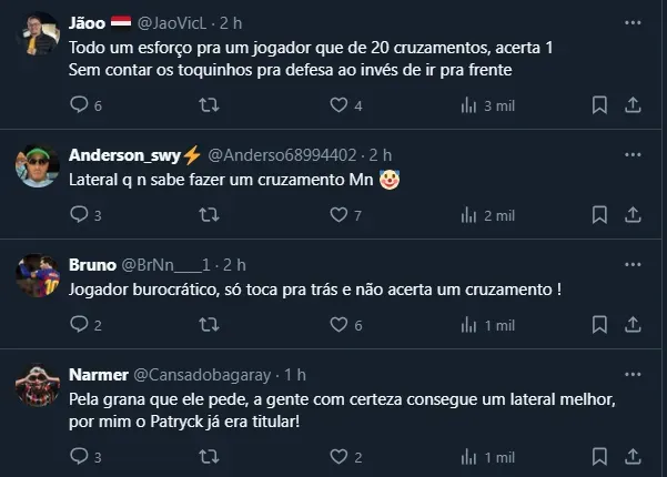 Posto isso, é interessante ressaltar que a posição é extremamente carente no mercado brasileiro, o que vem aumentando a dificuldade do Tricolor em ampliar o vínculo do jovem de 23 anos.