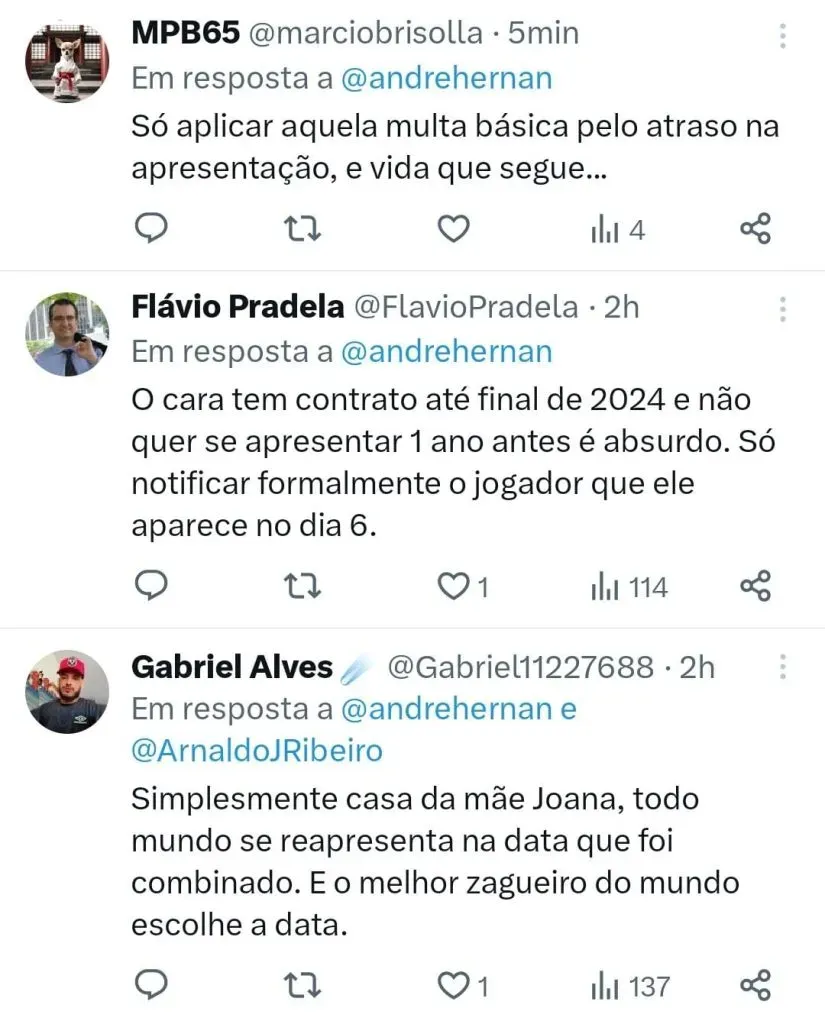Desta vez a diretoria ainda não se manifestou se irá punir o atleta com multa pelo atraso na reapresentação, mas a possibilidade fica em aberto até pela ausência de justificava para a postura do jogador.