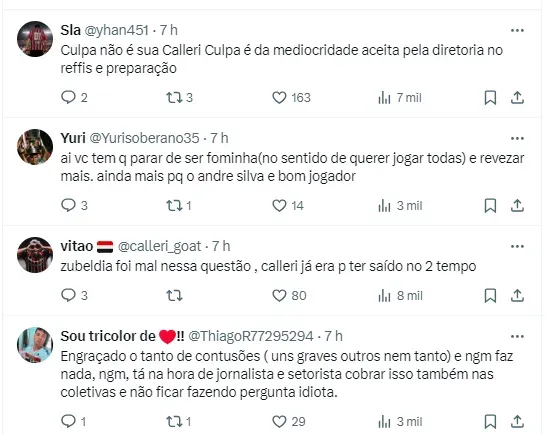 Calleri ainda criticou o início da equipe e elogiou o rendimento: “O time está bastante bem, estamos conseguindo jogar como queremos. Tivemos preguiça (no início), fizeram 1 a 0 e tivemos de virar. Essas coisas não podem acontecer. Temos de melhorar muitas coisas. Mas estamos no caminho certo”, completou.