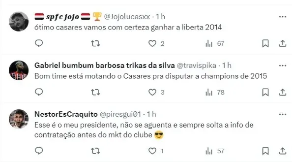 O São Paulo vive expectativa de definição e assinatura do negócio ainda nessa semana. Algumas minutas se alongaram, mas o otimismo segue. Em entrevista após o sorteio do Paulistão, Casares tocou no tema.