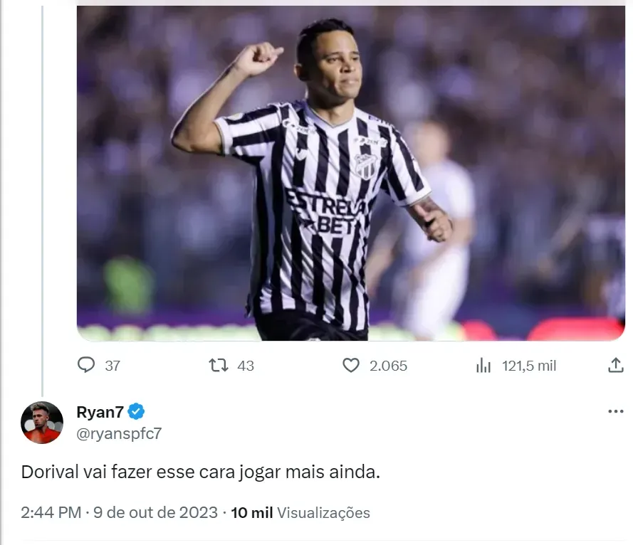 Um jogador que é certo que vai atuar no Tricolor Paulista trata-se do atacante Erick, do Ceará. O ponta de 25 anos é um dos destaques do Vozão na temporada e soma 10 gols e quatro assistências em 30 partidas do Campeonato Brasileiro da Série B. Ele assinou um pré-contrato com o Clube do Morumbi e se apresenta em janeiro ao time da Barra Funda. Inclusive, Dorival Júnior conhece muito bem o atleta.