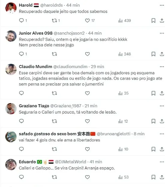 Anteriormente, o São Paulo foi até Córdoba, na Argentina, para enfrentar o Talleres e acabou sendo derrotado por 2 a 1. O resultado, inclusive, deixou Carpini em uma situação bastante delicada no clube.