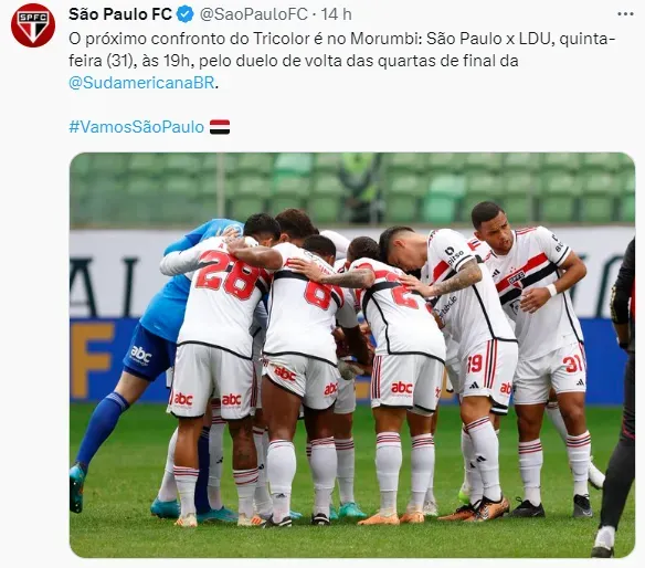 Além do revés, o Tricolor ainda ganhou um desfalque para o próximo confronto da competição de pontos corridos, que será contra o Coritiba, no próximo domingo (3), às às 20h30 (de Brasília), no Morumbi, pela 22ª rodada do Campeonato Brasileiro.