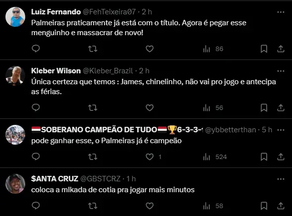 Jhegson Méndez, Luan e Gabi Neves não estão nos planos de Dorival Júnior, além disso, devem ficar de fora da lista de relacionados para o confronto. O São Paulo ocupa a 11ª colocação, com 50 pontos ganhos.