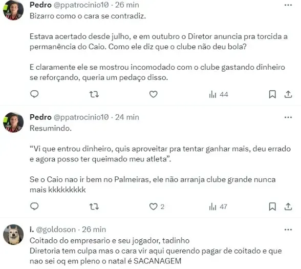 O empresário de Caio Paulista quebrou o silêncio e falou pela primeira vez sobre a não permanência do lateral no São Paulo, em contato com o jornalista Venê Casagrande, que publicou tudo no seu perfil no X (antigo Twitter).