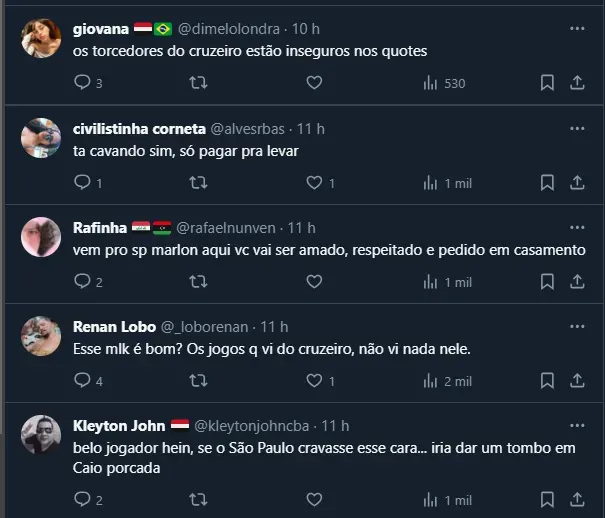 O jogador do Cruzeiro atuou com Luciano nos tempos de Fluminense, mas a atitude causou um burburinho. Afinal, o interesse do SPFC pelo jogador já foi exposto e a torcida tricolor resolveu dar uma “forcinha” nas redes sociais, voltando a pedir sua contratação.
