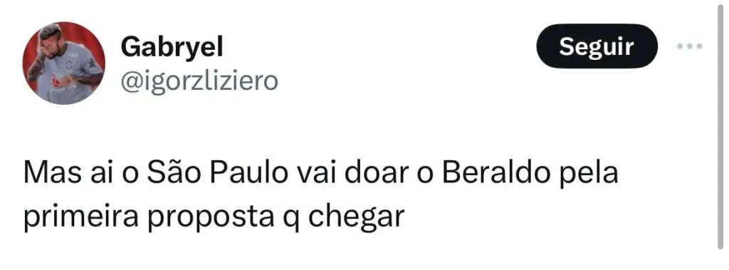 São Paulo entende que pode chegar proposta de R$ 100 milhões por Beraldo