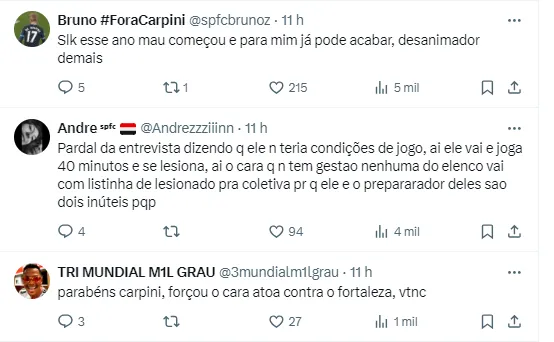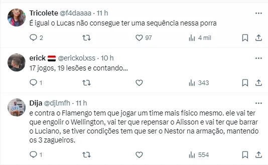 Reações da torcida sobre a ausência do meia