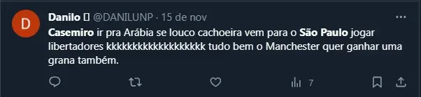 Como são-paulino, você gostaria que Casemiro fosse para a Arábia Saudita?