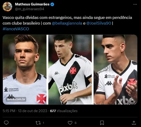 Vale destacar que a 777 Partners, dona da SAF do Vasco, fez um aporte financeiro previsto em contrato para o Cruzmaltino. A equipe carioca sanou as dívidas que tinha com Nacional-URU, Atletico Tucumán-ARG e Lille-FRA, clubes que acionaram a Fifa devido aos atrasos, pelas vendas de Pumita Rodríguez, Capasso e Léo Jardim, além de ter pago também o Atlético-MG, por Jair.