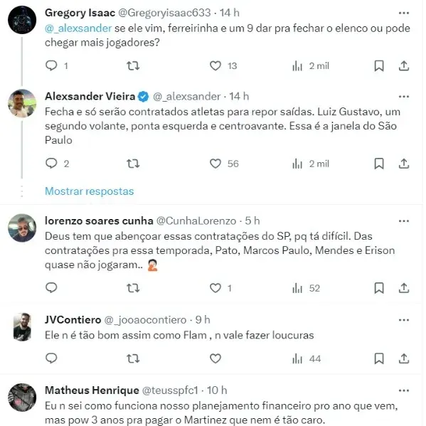 Neste momento, apenas o Tricolor Paulista abriu negociação, e o jogador deu aval para as conversas. Outras equipes sondaram, mas ninguém fez proposta oficial além do São Paulo.