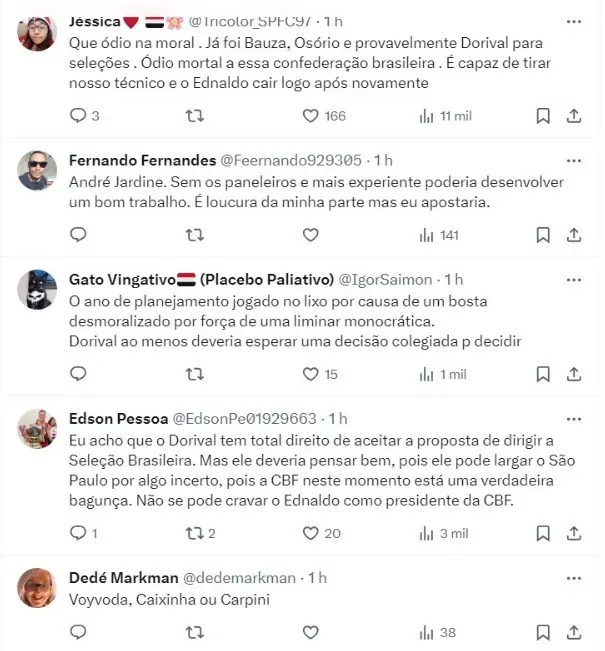 Vale ressaltar que o contrato de Dorival Júnior com o São Paulo não possui multa rescisória em caso de saída para a seleção. Nesse sentido, o comandante tem total liberdade para aceitar o convite sem que o clube seja ressarcido.