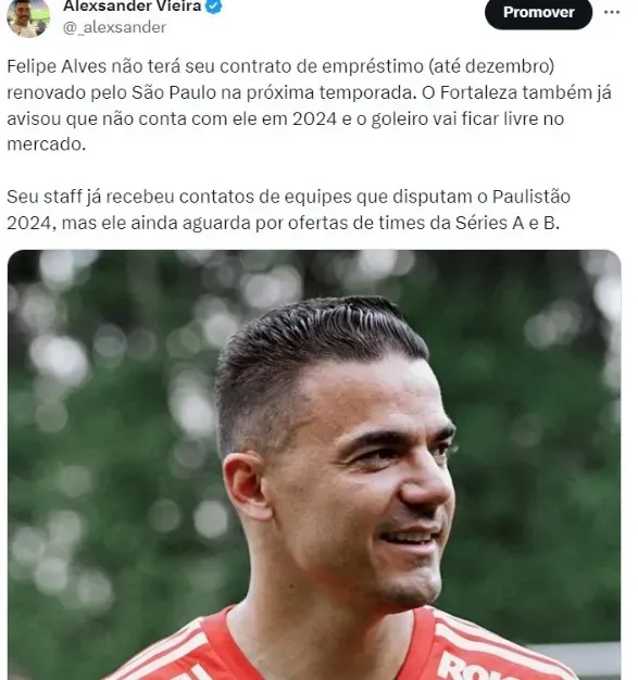 Seu staff já recebeu contatos de equipes que disputam o Paulistão 2024, bem como recebeu propostas de clubes das Séries A e B.