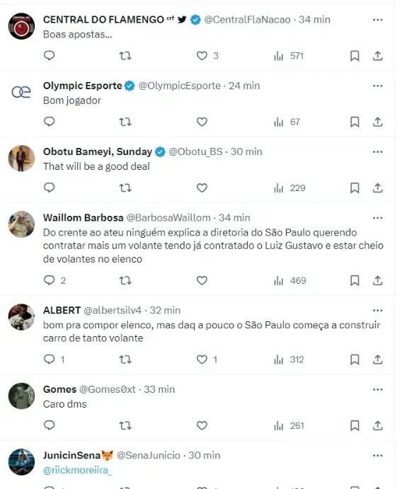 Além do São Paulo, o Corinthians também monitora a situação do jogador. Ainda segundo apurou o portal, tanto o Tricolor quanto o Timão somente sondaram a situação do atleta, sem oficializar nenhuma proposta.