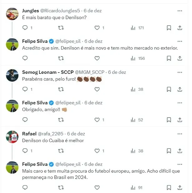 Além do São Paulo, o Corinthians também monitora a situação do jogador. Ainda segundo apurou o portal, tanto o Tricolor quanto o Timão somente sondaram a situação do atleta, sem oficializar nenhuma proposta.