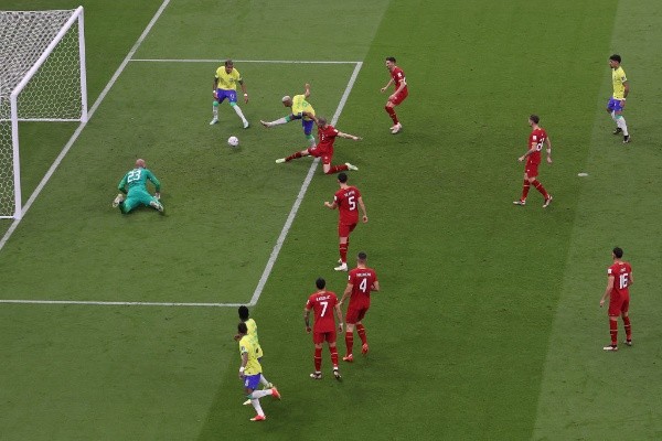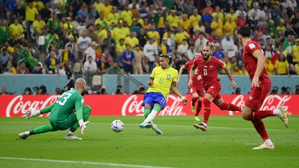 Richarlison estava um pouco apagado no jogo, devido a boa marcação do adversário, mas foi ele quem furou o bloqueio sérvio. Aos 18 minutos, Neymar driblou os marcadores, a bola sobrou para Vini Jr, que bateu no gol. O goleiro rebateu e Richarlison marcou o primeiro gol do Brasil no Qatar 2022.