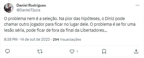 O comandante do Brasil carrega também responsabilidade no Fluminense, acumulando a função de técnico nos dois lugares. Nesta segunda convocação com a Seleção, Diniz precisou chamar os laterais Carlos Augusto, Emerson Royal e Yan Couto, além do zagueiro Adryelson após uma série de baixas. Enquanto Danilo, Vanderson e Caio Henrique vão precisar retornar à Europa, o nome que pode preocupar ainda mais o comandante Tricolor é Nino.