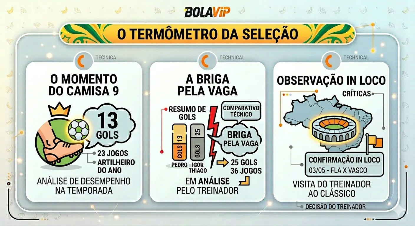 Em recente entrevista ao Globo Esporte, Pedro disse que o sonho de estar na Copa do Mundo continuava aceso e citou uma entrevista de Ancelotti de 2025. O treinador da Seleção Brasileira disse que tinha planos de convocar o camisa 9 na Data FIFA de novembro do ano passado.