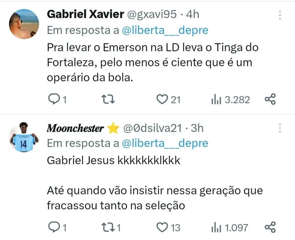 Além de Carlos Augusto, que também deve receber uma oportunidade é Gabriel Jesus, que vai formar o quarteto de ataque com Raphinha, Martinelli e Rodrygo, isso porque Vinícius Júnior sofreu uma lesão na coxa e foi desconvocado.