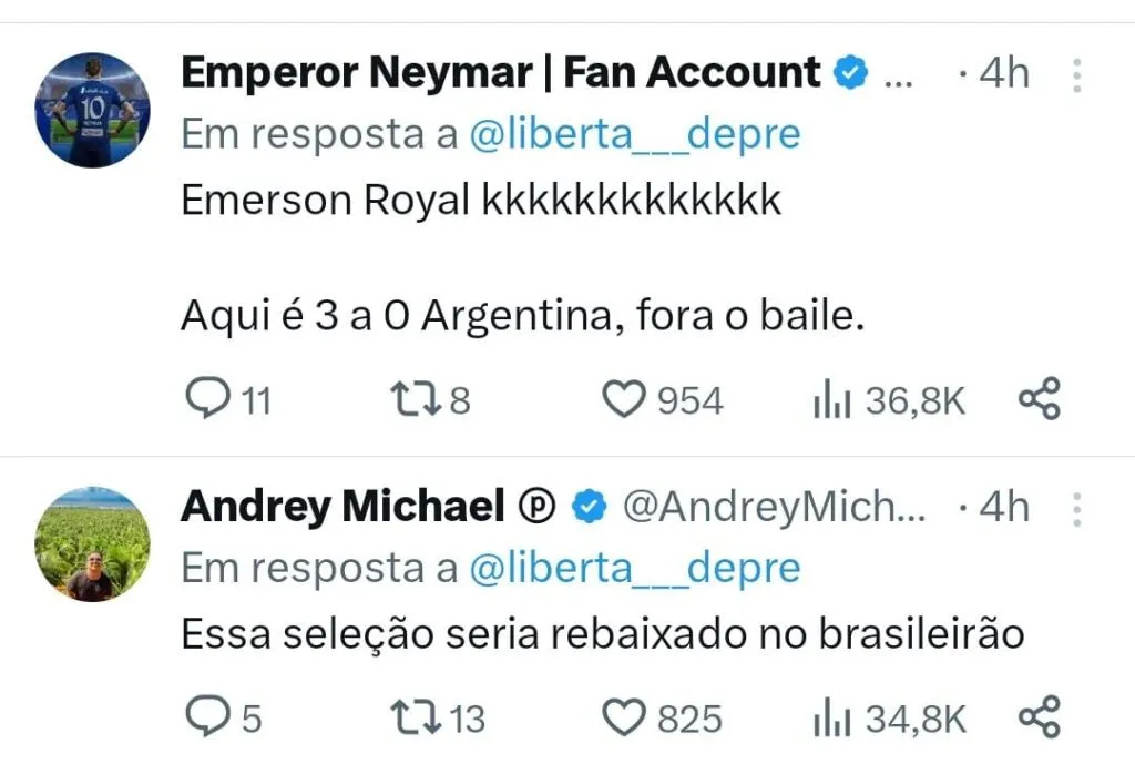 Apesar de Lodi perder o status de titular para o clássico, Emerson Royal deve entrar na relação inicial, isso porque não há reserva convocado para a lateral direita e por isso vai entrar em campo para a partida contra a Argentina.