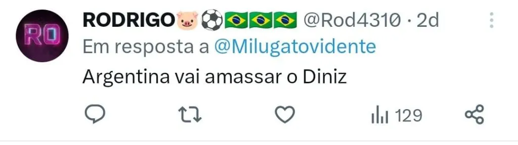 “Torço pela Argentina em todas as categorias, não só na principal, não. Sou muito criticado, mas cada um tem seu direito de torcer. Vou ser Argentina pelo resto da minha vida”, declarou Mescias.