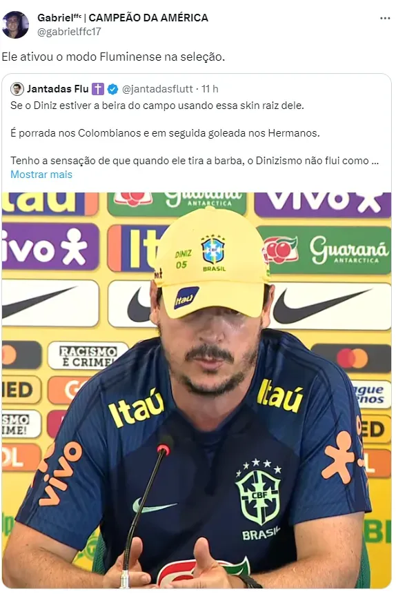 “Todos ficamos felizes pela conquista, não só pelo Fernando, mas pelo estafe que também é do Fluminense, os companheiros que jogam lá. É mais um brasileiro campeão da Libertadores, e isso valoriza o futebol brasileiro”, declarou.