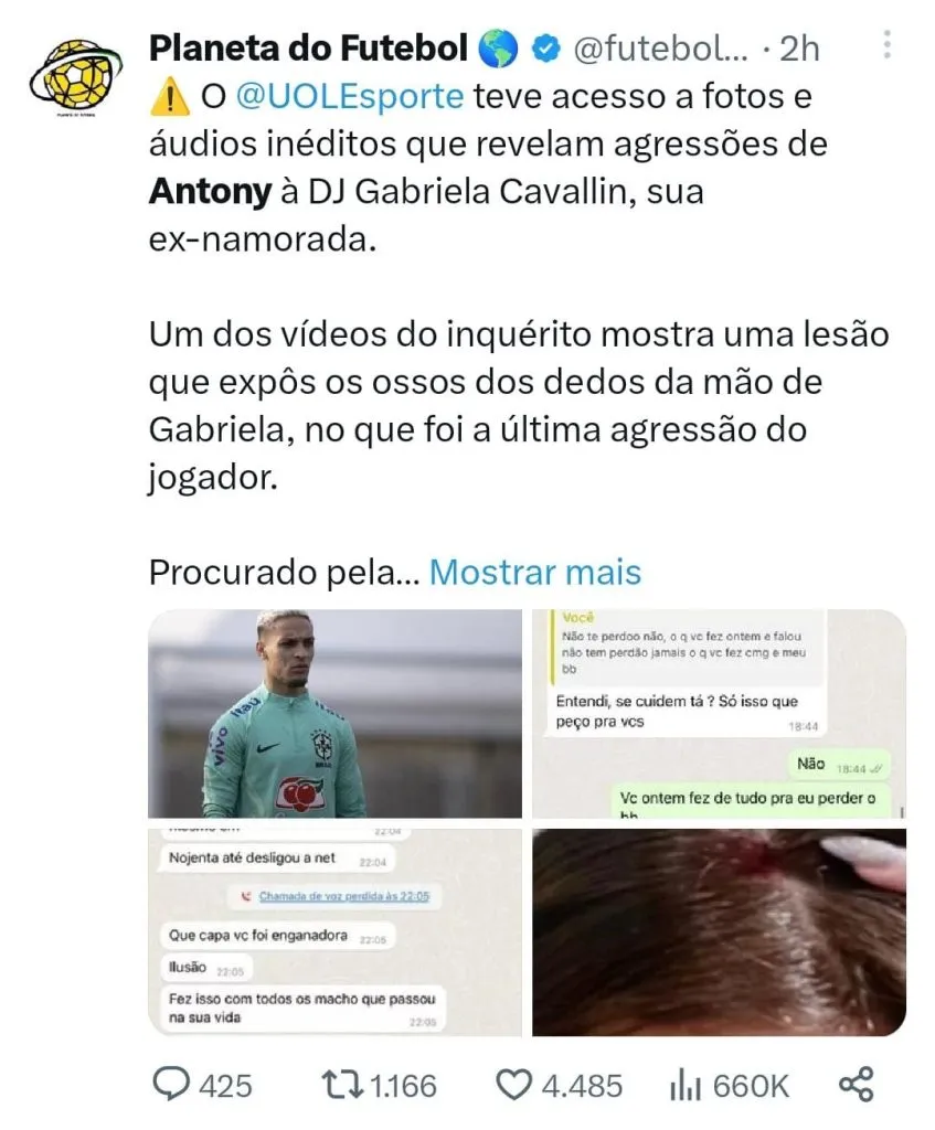 Uma reportagem exclusiva do Uol trouxe à tona áudios e fotos que indicariam as supostas agressões do atacante Antony contra a ex-namorada colocando os holofotes mais uma vez sobre a decisão de Diniz de convocá-lo para os dois primeiros jogos da Seleção Brasileira pelas Eliminatórias da Copa do Mundo 2026. O jornalista Mauro Cezar afirmou que o treinador “vacilou” em sua primeira convocação e deu eco às críticas ao critério utilizado pelo atual treinador da Seleção Brasileira no momento da convocação.