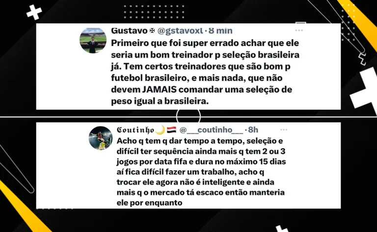 “Quando assumi, todos exigiam essa renovação. Mas parece que querem o sucesso antes do trabalho, e só acredito que isso só existe no dicionário”, completou o treinador, que tem recebido muitas críticas da torcida brasileira.