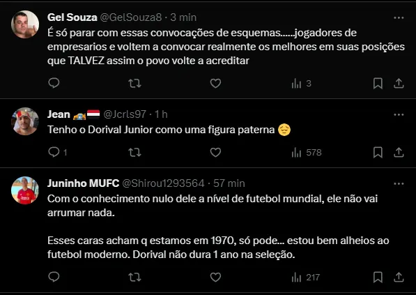 Uma das principais discussões envolvendo a seleção é a convocação ou não de jogadores que atuam em solo brasileiro. Dessa forma, na 1ª entrevista coletiva, Dorival Júnior comentou sobre esse tópico: