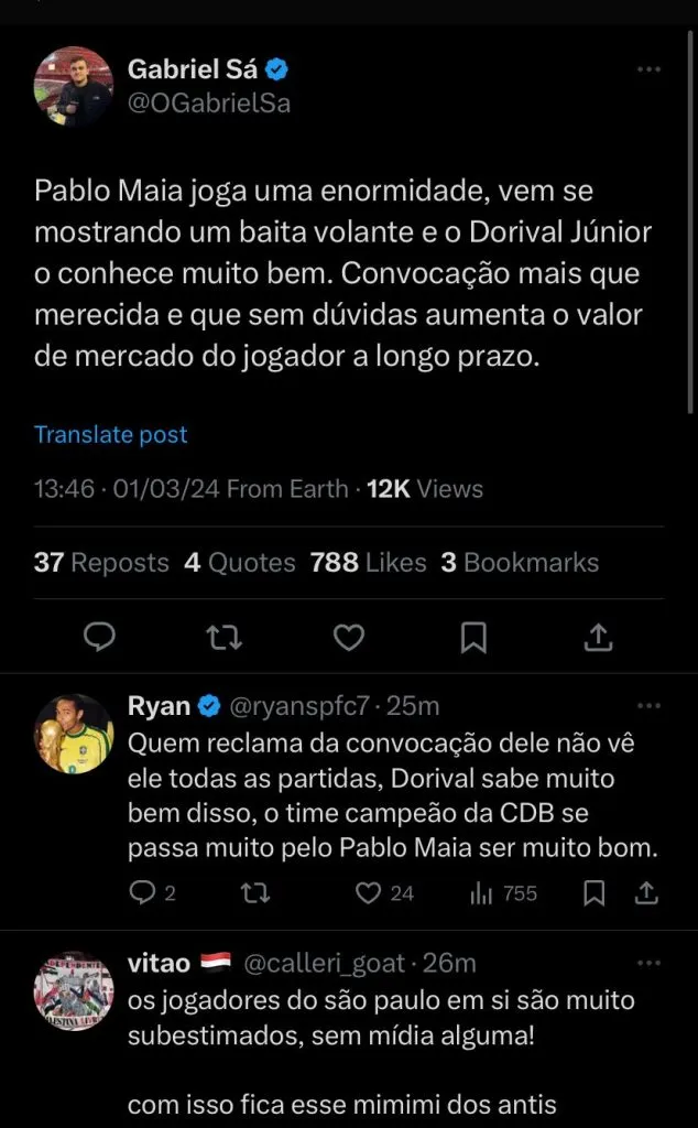 André que foi campeão da Recopa pelo Fluminense nesta quinta-feira (29) e Pablo Maia, jogador do São Paulo. Os demais foram: Andreas Pereira do Fulham, Bruno Guimarães do Newcastle, Casemiro do Manchester United, Douglas Luiz do Aston Villa, João Gomes, do Wolverhampton e Paquetá do West Ham.