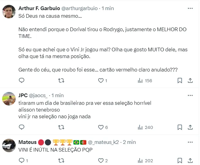 Vini Jr. virou centroavante, e Endrick, jogando pela direita, ainda arriscou três chutes a gol, para defesa tranquila do goleiro Turner. Final de jogo, Brasil 1 x 1 Estados Unidos.
