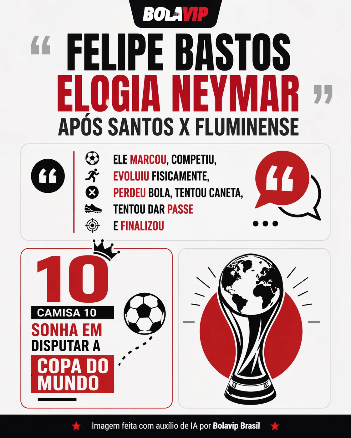 A menos de um mês da convocação final da Seleção Brasileira para a Copa do Mundo, Neymar segue em evidência dentro e fora de campo. Apesar das críticas de parte da imprensa, Fellipe Bastos elogiou a atuação do camisa 10 em Santos x Fluminense e saiu em defesa do jogador.