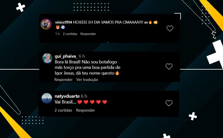 Apesar do sentimento de frustração pela eliminação no Catar ainda assombrar os torcedores, muitos alimentam a esperança de uma virada espetacular. Mensagens como “Boa sorte, vamos” e “Só quero a vitória hoje” refletem o otimismo, enquanto outros gritam “Viva Brasil!” e “Vamos apoiar, galera!”.