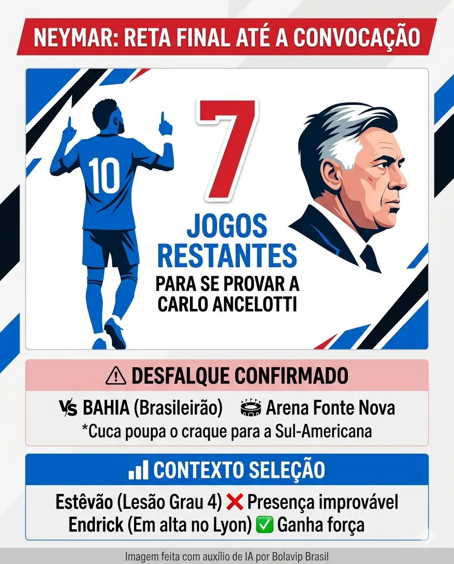 Além disso, outro jogador que está com baixas chances de poder ir para a Copa é Estêvão. O jogador do Chelsea sofreu uma lesão na coxa de grau 4, o que torna a sua presença muito improvável.